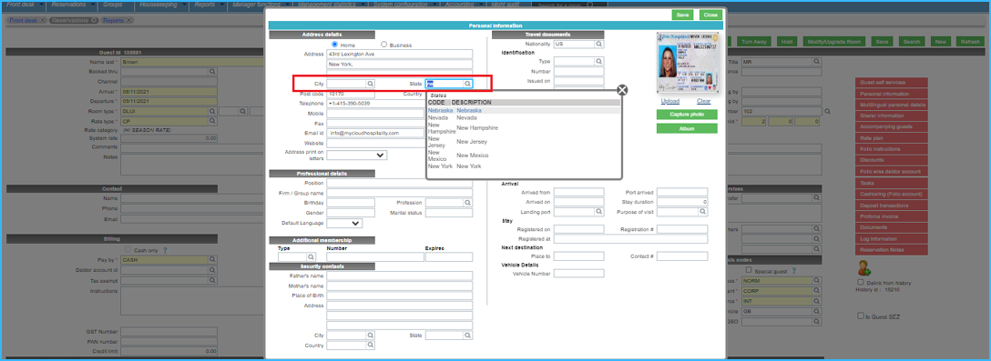 A new “dropdown option” has been introduced in guest profile and personal information screen to select the “state and city”. This feature aims to standardize spellings and ensure uniformity across all entries, thereby improving data consistency and accuracy.