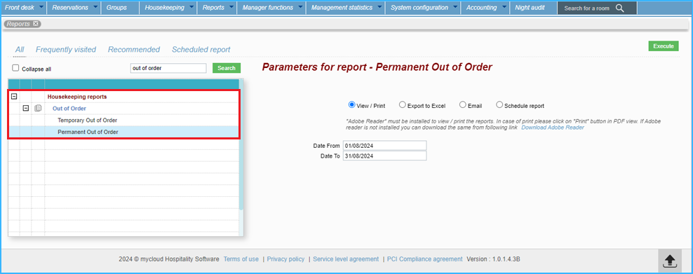 To improve hotel housekeeping staff productivity, the permanent and temporary out-of-order reports have been updated by giving ability to fetch records from past dates, allowing staff to access historical data for better room management and scheduling.